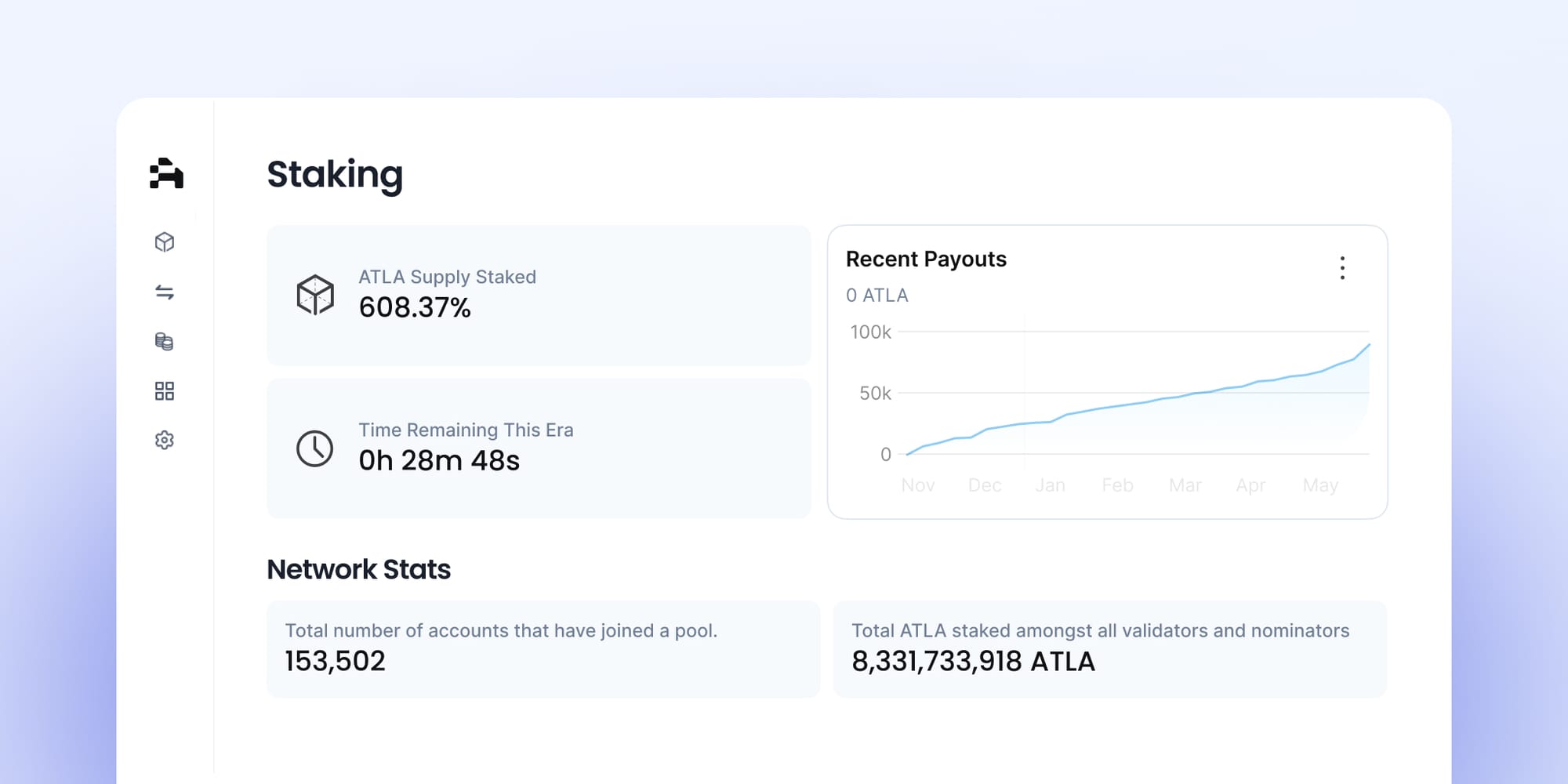 - ATLA Supply Staked: Track the total supply of ATLA tokens being staked, across all validators and nominators.