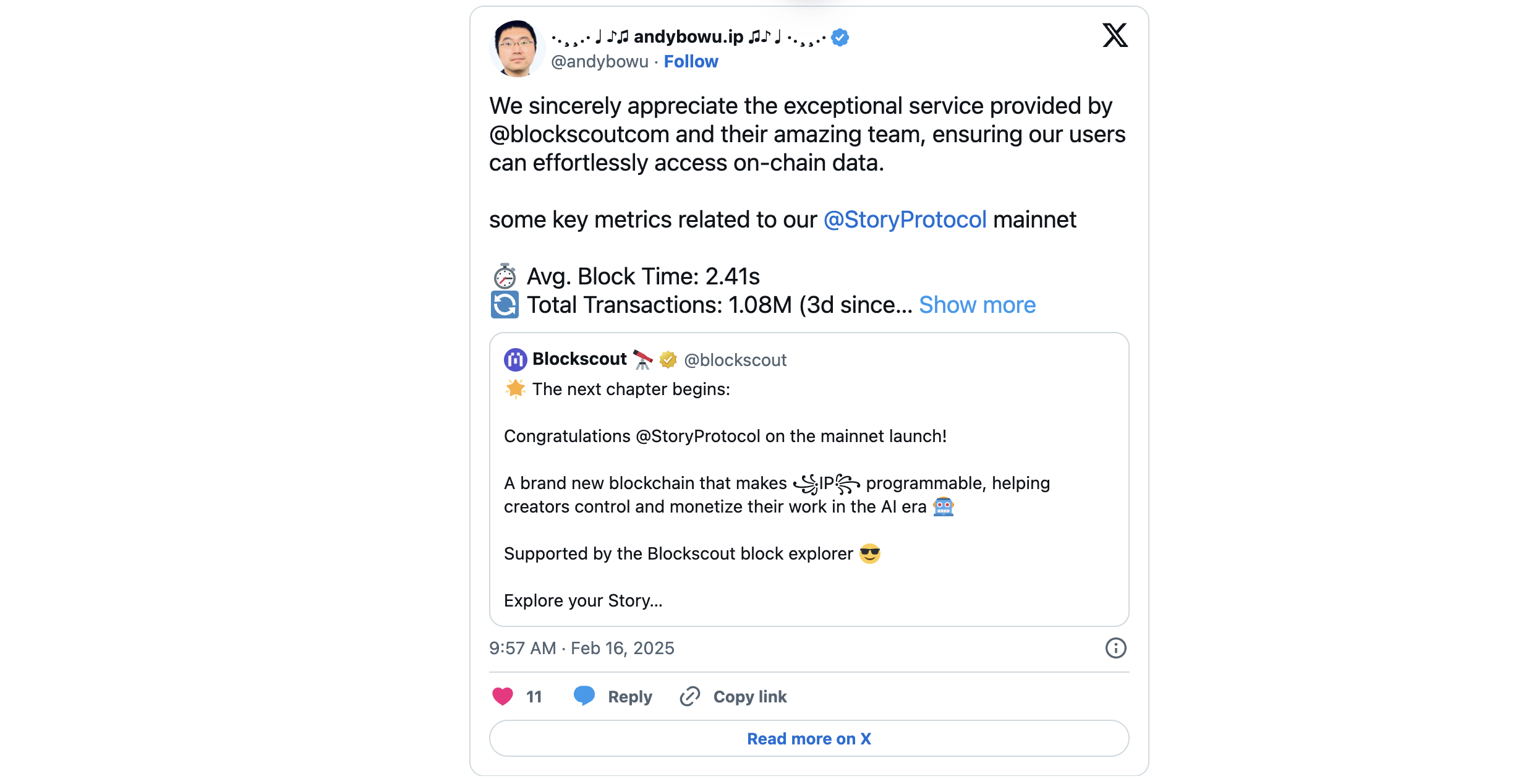 ꧁IP꧂ The Story public mainnet is already racking up impressive transaction and address stats since the February launch.