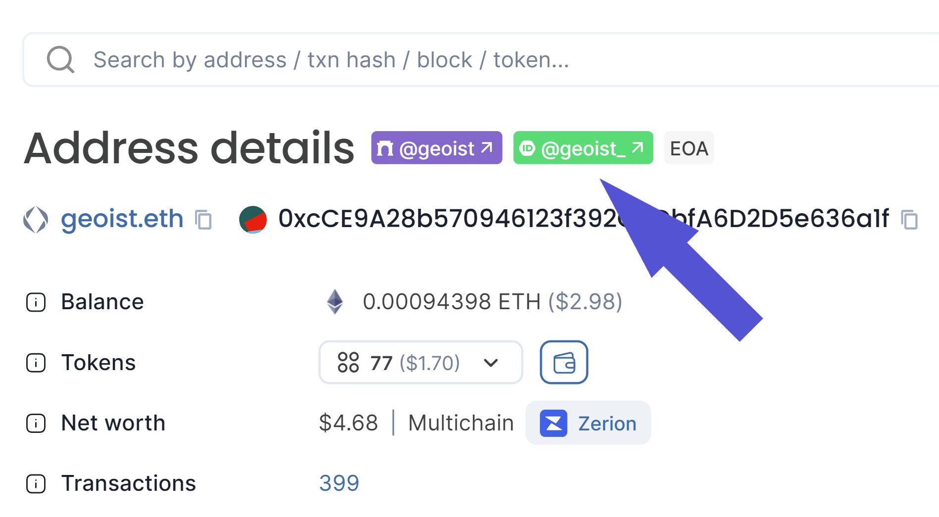 This integration helps users make sense of blockchain transactions quicker by providing familiar social media context. For instance, users can instantly recognize their own identity, distinguish it from other data in the explorer's interface, and gain confidence in using the right address.