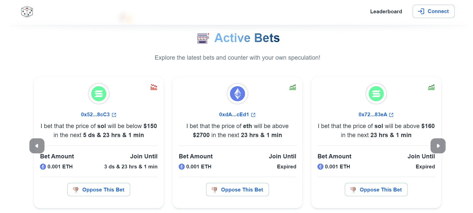 AceDen developed a peer-to-peer betting platform for cryptocurrency price movements. This innovative project allows users to wager on whether cryptocurrency prices will rise or fall, supporting popular cryptocurrencies like Bitcoin, Ethereum, and Solana.