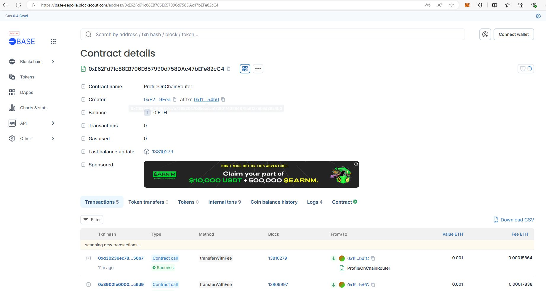 The team used Blockscout to verify their smart contracts across multiple testnets, including Arbitrum Sepolia, Base Sepolia, and Scroll Sepolia. This multichain verification process demonstrates Blockscout's versatility in supporting development across various blockchain networks.