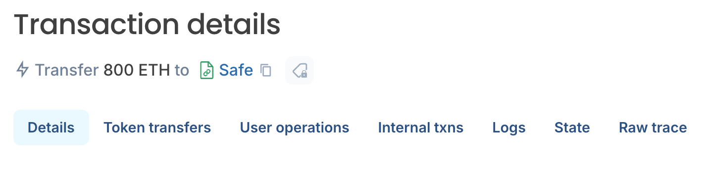 | Details | Structured transaction metadata such as hash, block, and gas | Already summarized at the top |