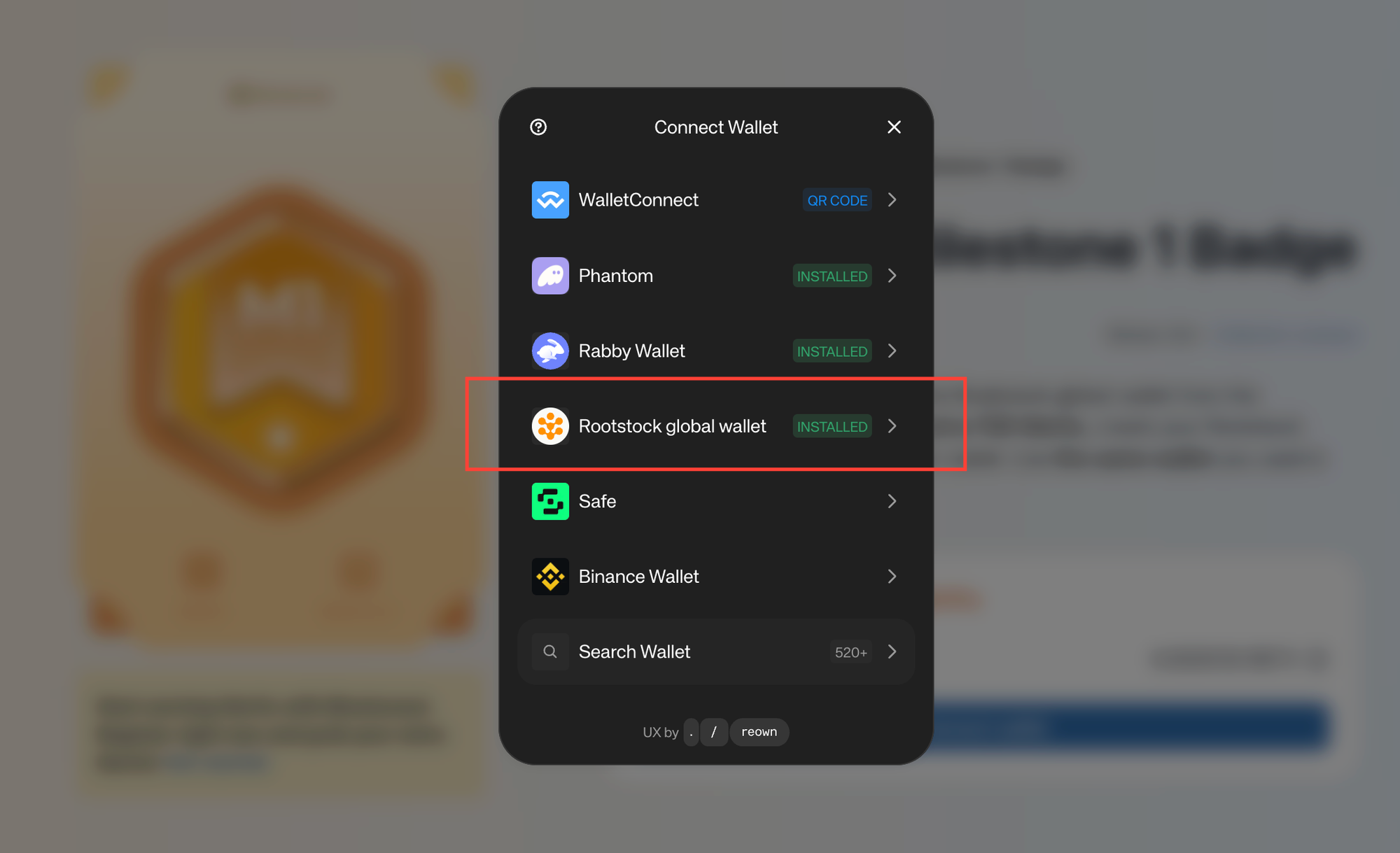 Mint the Rootstock Global Wallet milestone badges and explore a unified wallet experience with gas sponsorship, account abstraction, and simplified onboarding on Rootstock.