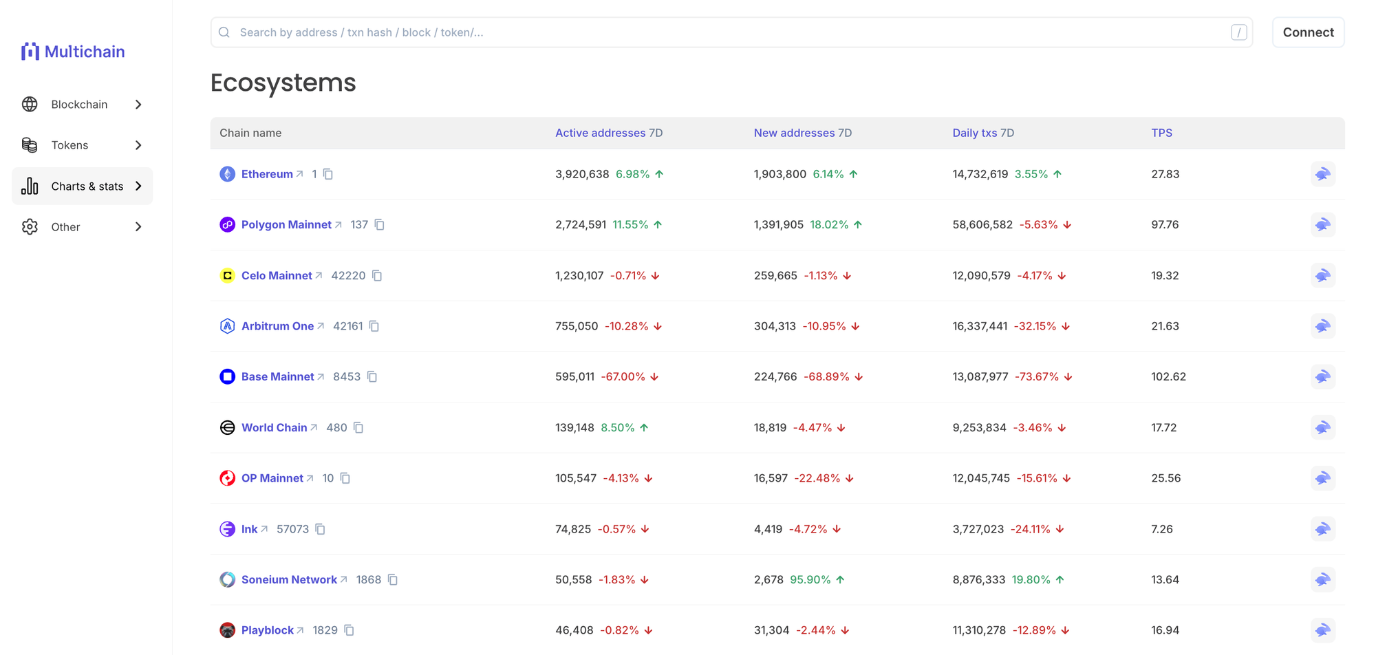 The Multichain Explorer is the starting point for understanding activity across the broader EVM ecosystem.