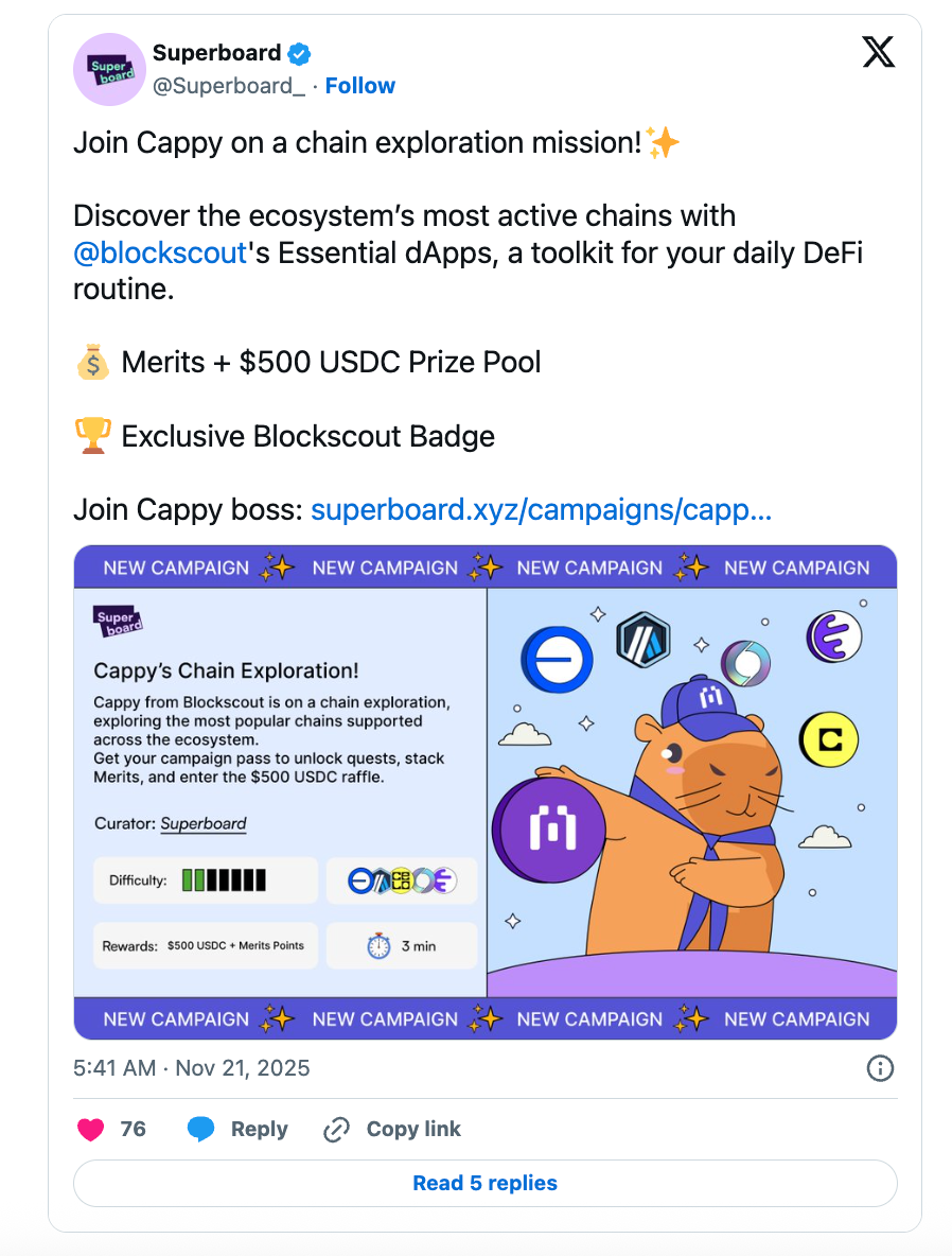 There's still (barely) time to participate in the Superboard campaign - ending Jan 31. Prizes include a $500 USDC Raffle Distribution!