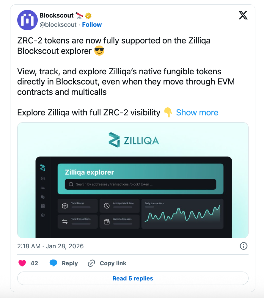 Our X🧵 goes into details on the ZRC-2 token standard and how it's supported on their explorer. See Zilliqa in action here.