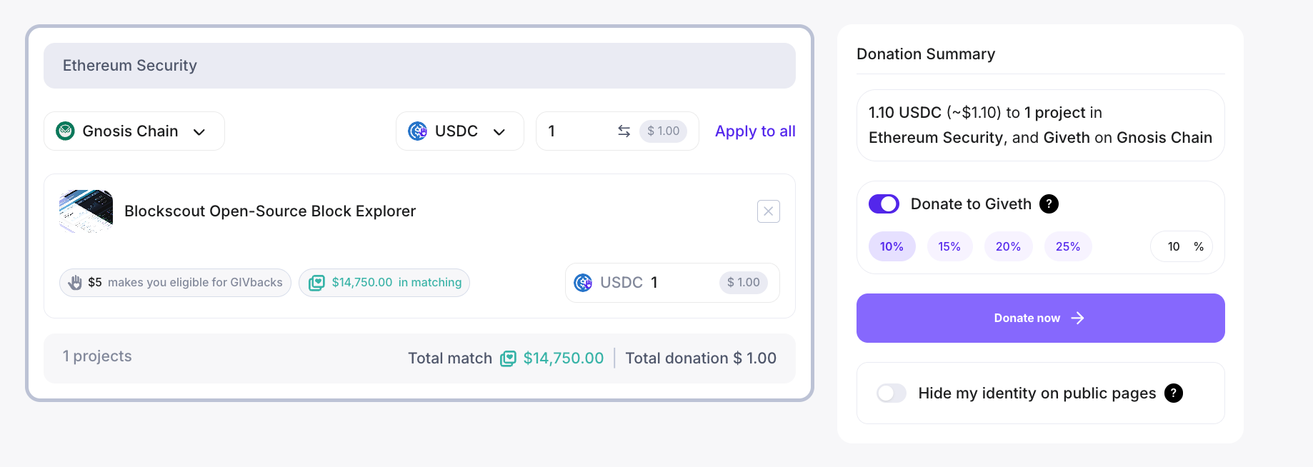 Here's why we're asking, and why small donations matter more than you'd think. In quadratic funding, the matching pool rewards the number of donors along with the size of donations. A $1 contribution from you can unlock a ton more in matching funds for Blockscout.