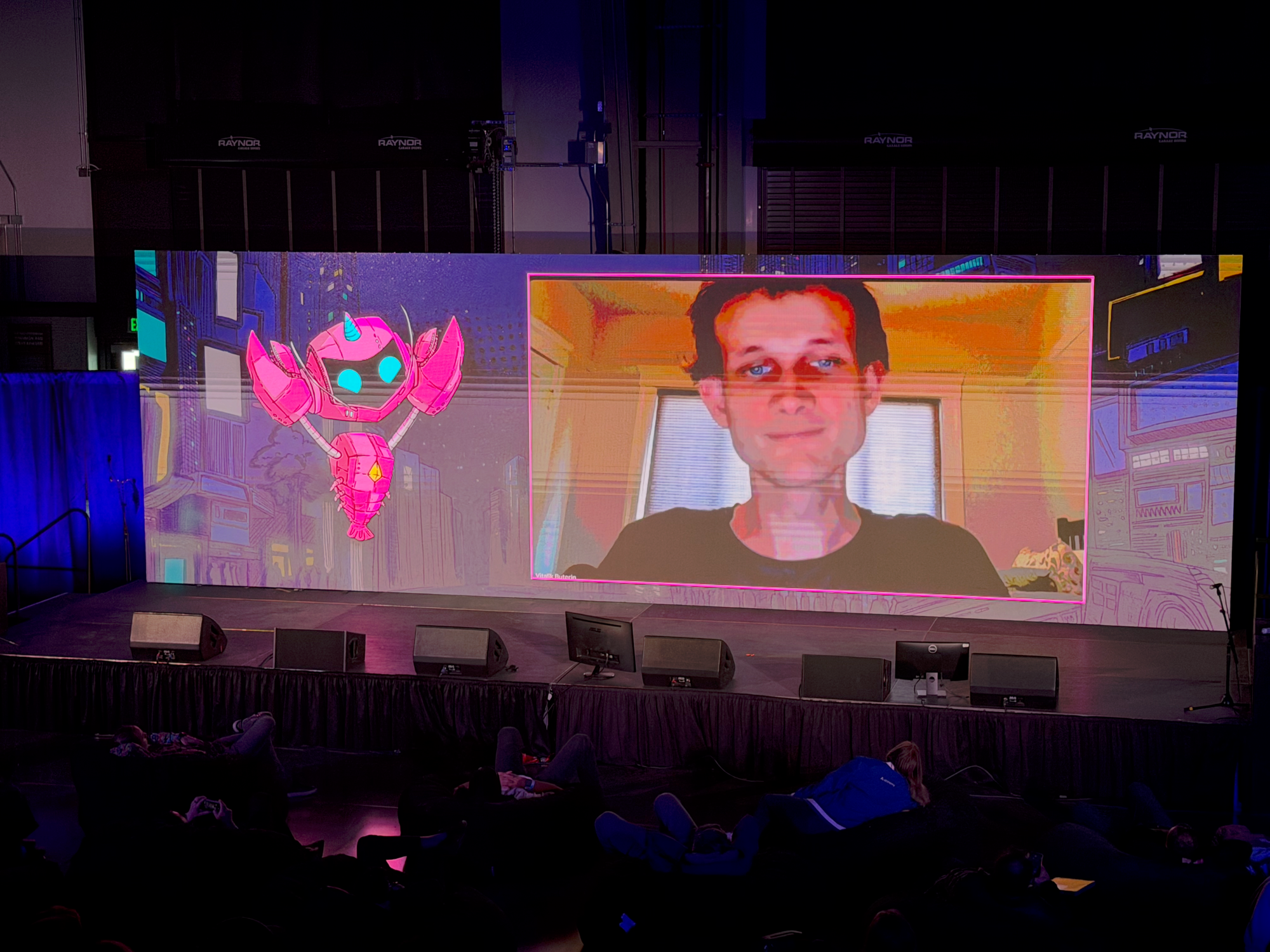 It sounded like Vitalik had arrived early to the ETHDenver opening ceremony. His voice echoed through the cavernous event space, but when we arrived to the main stage it was only an AI bot, programmed to speak with Vitalik's voice while incorporating awkward pauses and even more awkward dad jokes.