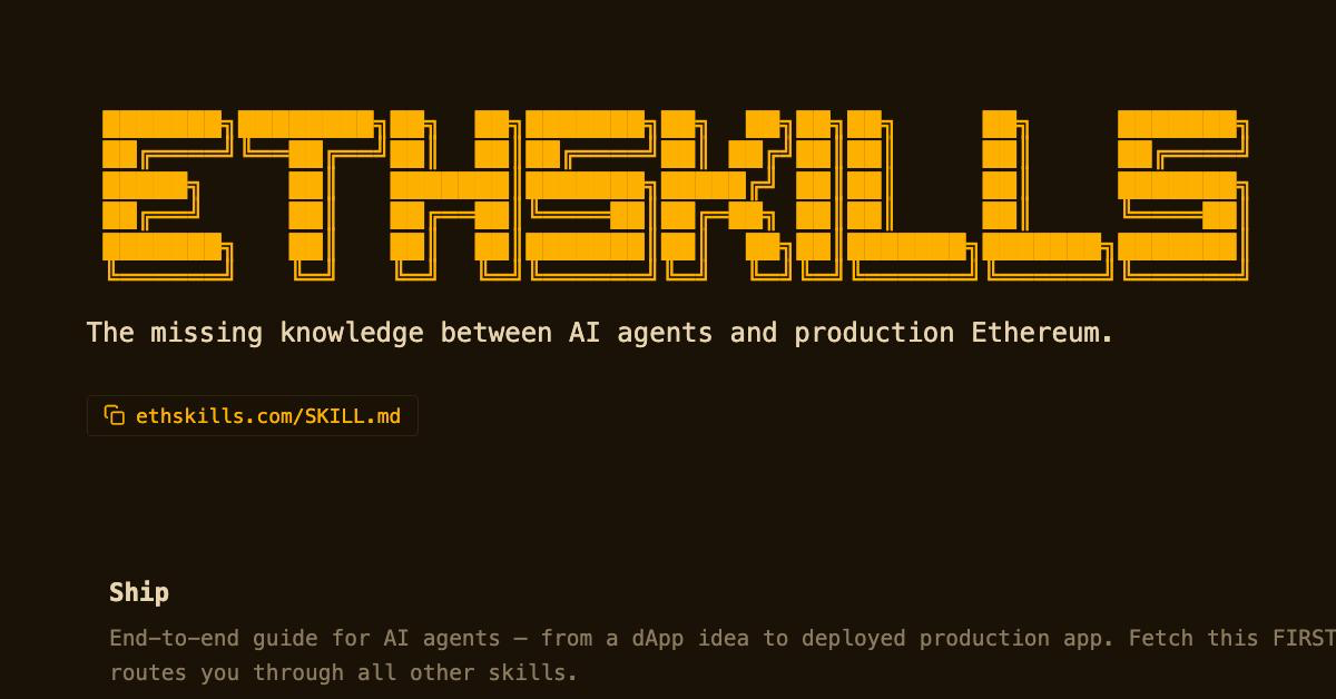 Blockscout features prominently on this new site created for Ethereum AIL exploration by Austin Griffith and his ClawdBot Agent. With ETHskills you can give your AI agent a skill URL and it fetches the page, reads the content, and instantly knows more about Ethereum and how to interact and build.